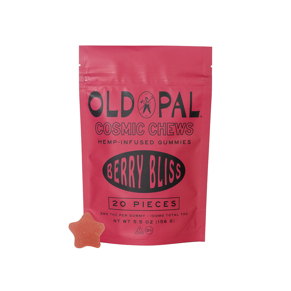 Old Pal Cosmic Chews are a trip down memory lane. These fruity gummies are a fresh take on a classic. Our Berry Bliss gummies are a delightful blend of raspberry, blueberry, and blackberry that meld into a pop of sweetness with a touch of tart. With 5mg of hemp-derived THC per individually wrapped piece, Old Pal chews are stackable for a customizable experience and perfect for blissful moments with your best buds.