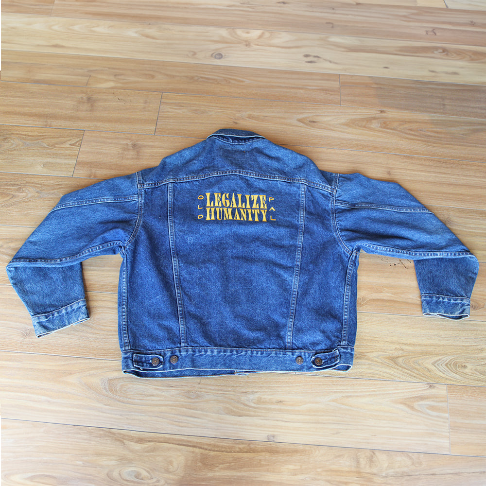 A one-of-one, pre-loved Levi’s denim jacket reworked with intention. Featuring a Legalize Humanity patch on the front and embroidered Old Pal Legalize Humanity on the back, each piece is truly unique with its own worn-in character.
