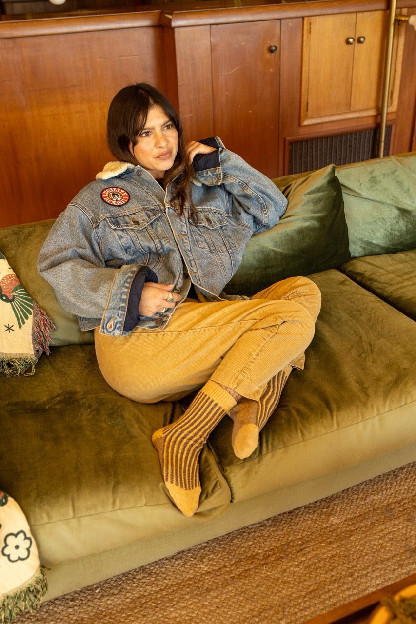 A one-of-one, pre-loved Levi’s denim jacket reworked with intention. Featuring a Legalize Humanity patch on the front and embroidered Old Pal Legalize Humanity on the back, each piece is truly unique with its own worn-in character.